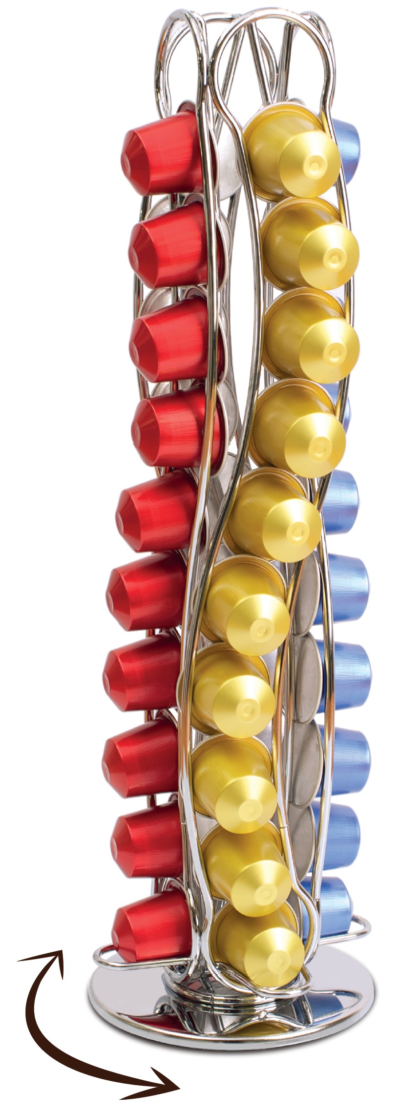Idéal pour présenter et ranger vos capsules Nespresso, ce porte-capsules rotatif est prévu pour 40 capsules. Pratique et rotatif, le porte-capsules permet de choisir facilement la capsule que vous allez pouvoir déguster. De plus d'un simple coup d'oeil, vous pouvez vérifier la quantité restant à votre disposition.